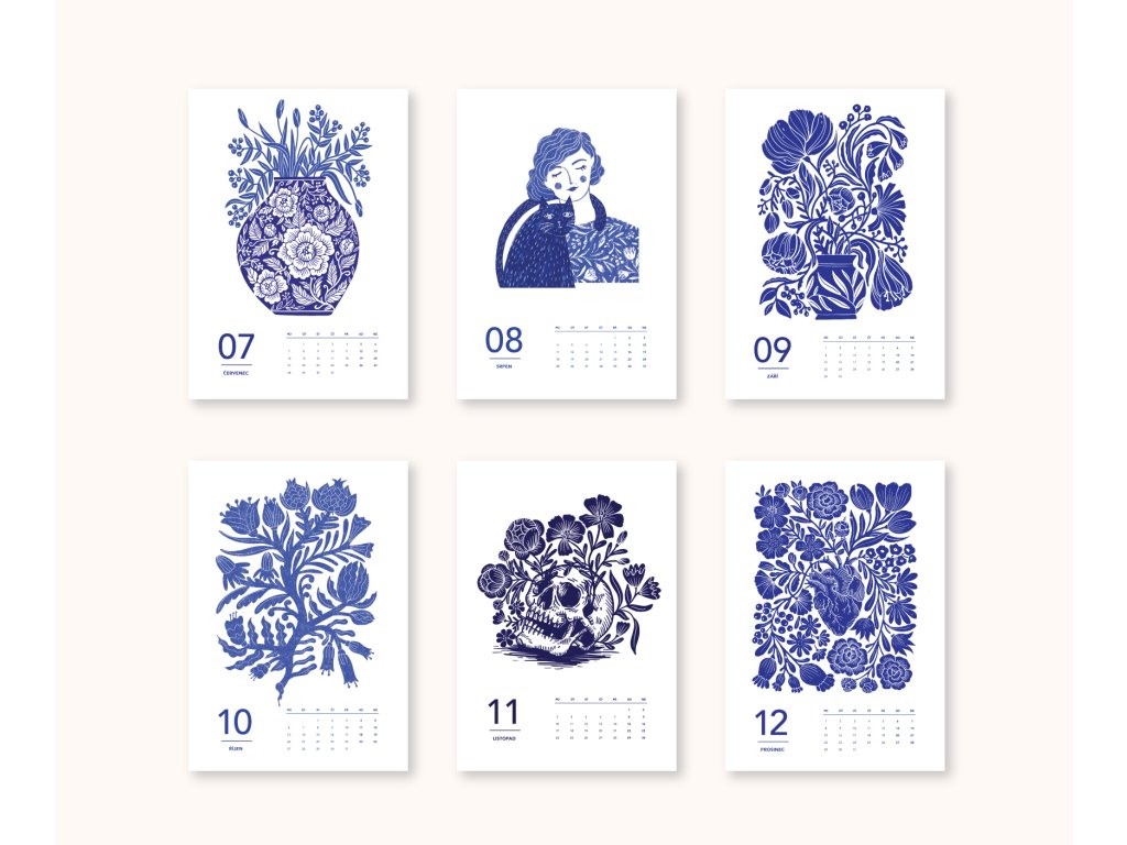 Kalendář obsahuje 12 různých ilustrací, které si můžete prohlédnout v náhledech galerie.
