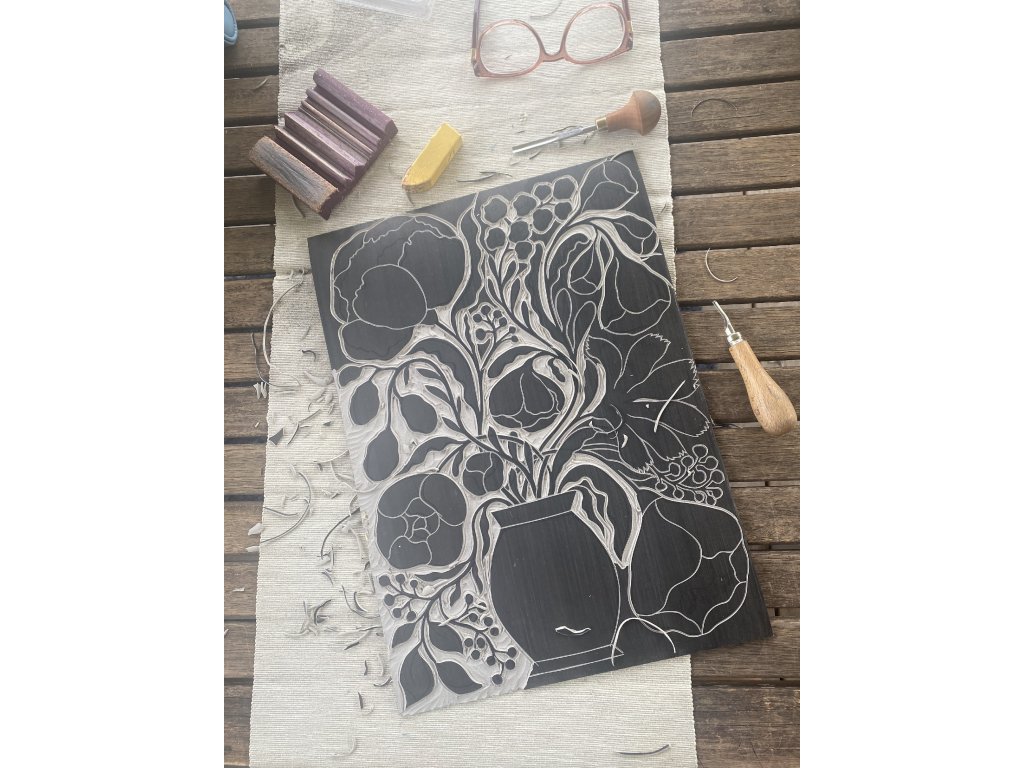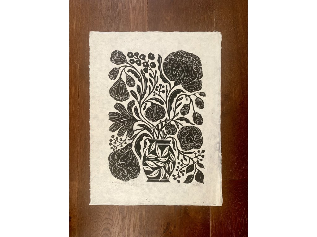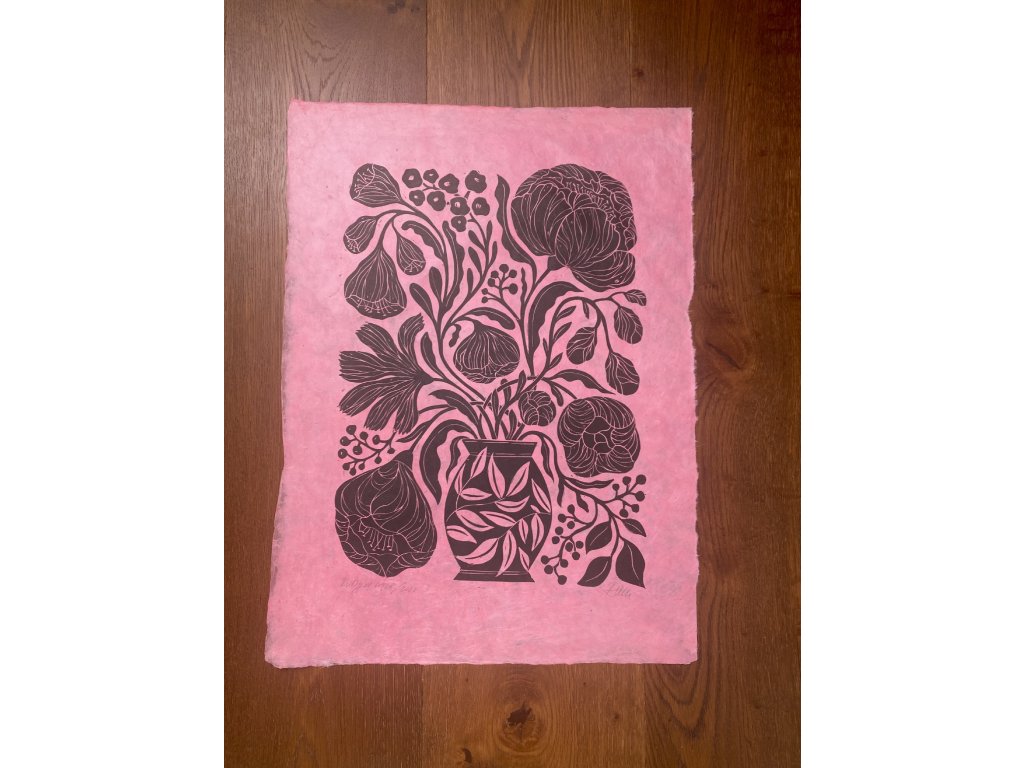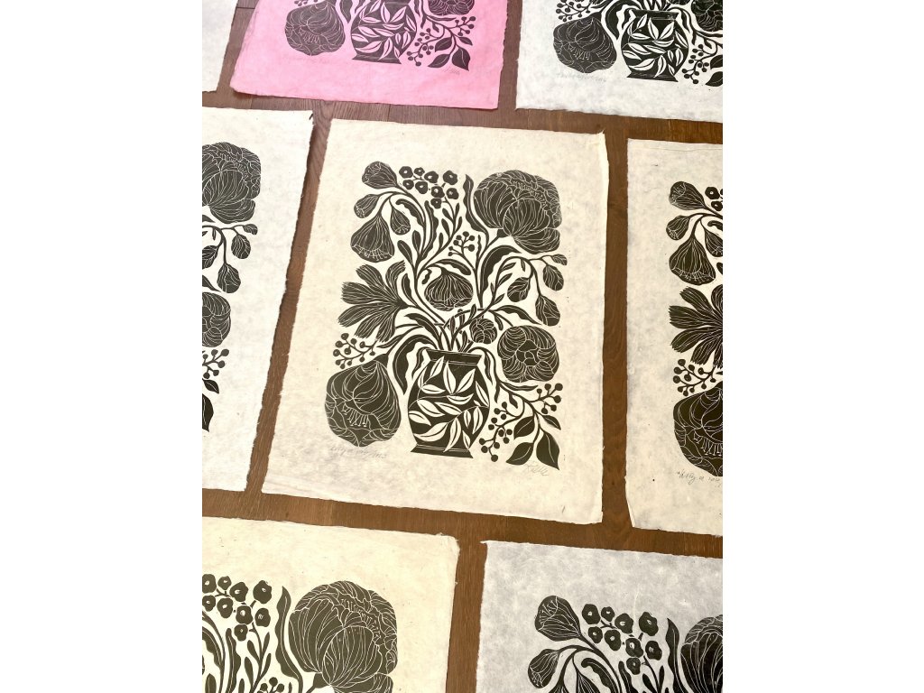 Autorský ruční tisk formou linorytu na nepálský ruční papír Lokta