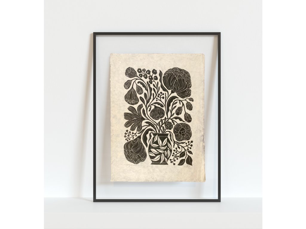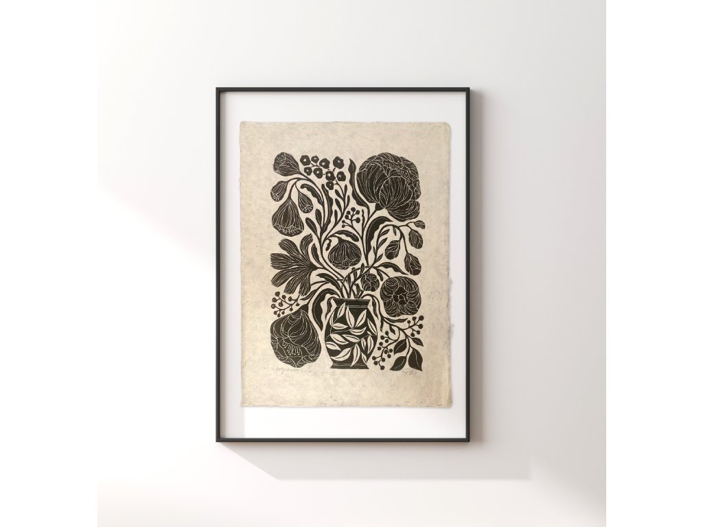 Každý tisk je originál s mírně odlišnou texturou barvy dle typu otisku z linorytové šablony. Textura otisku není "jednolitá" - vytváří nepravidelné krytí barvou což je charakteristické pro ručního zpracování.