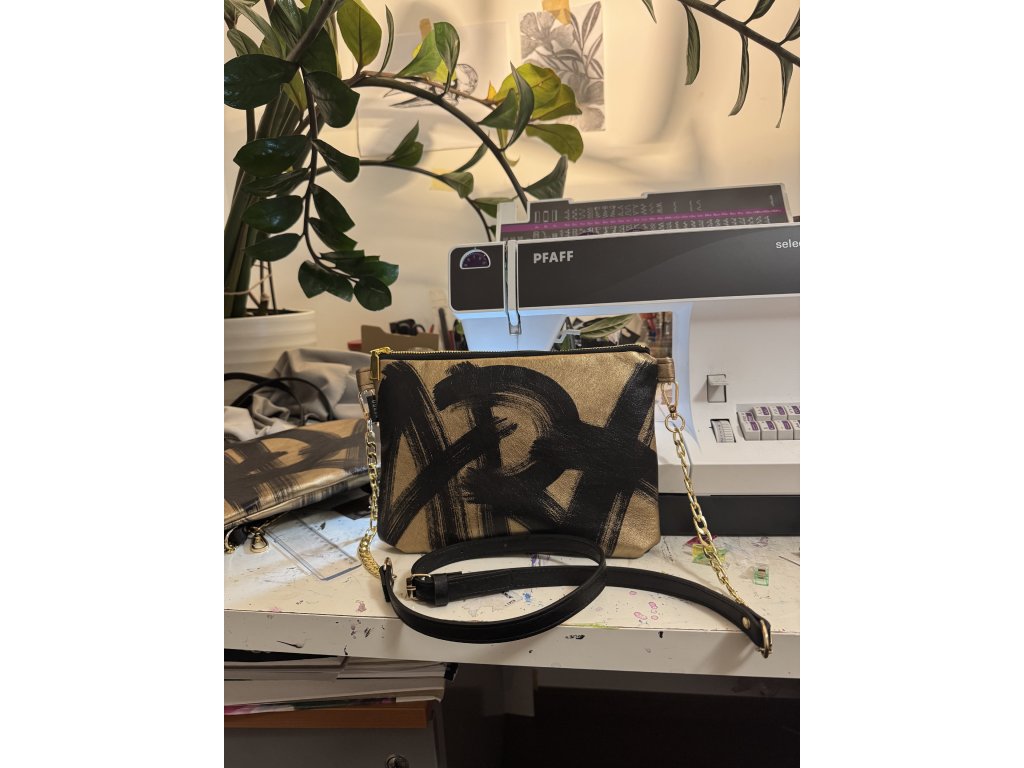 Crossbody kabelka ART v metalické zlaté kožence.