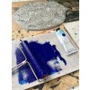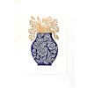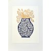 Dvoubarevný linorytový tisk: zlatý olej v kombinaci s modrým inkoustem
