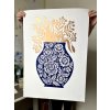 Každý tisk je originál s mírně odlišnou texturou barvy dle typu otisku z linorytové šablony. Textura otisku není "jednolitá" - vytváří nepravidelné krytí barvou což je charakteristické pro ručního zpracování.