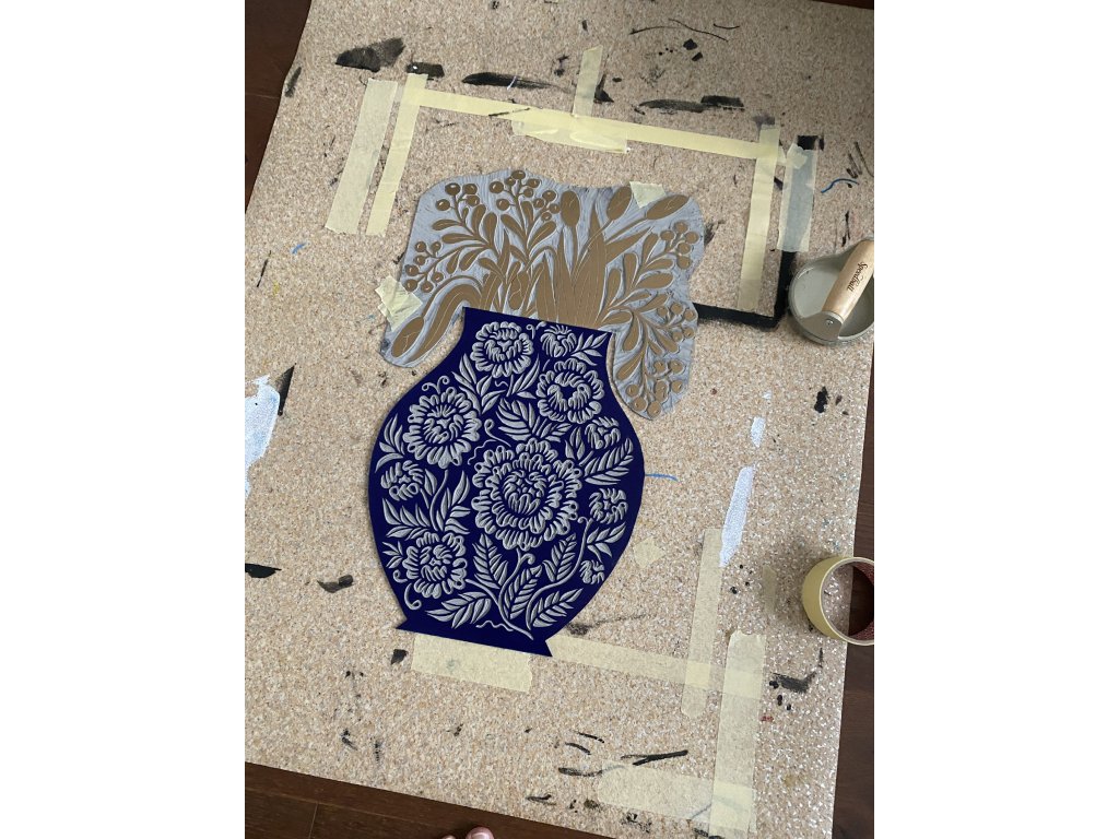 Každý tisk je originál s mírně odlišnou texturou barvy dle typu otisku z linorytové šablony. Textura otisku není "jednolitá" - vytváří nepravidelné krytí barvou což je charakteristické pro ručního zpracování.
