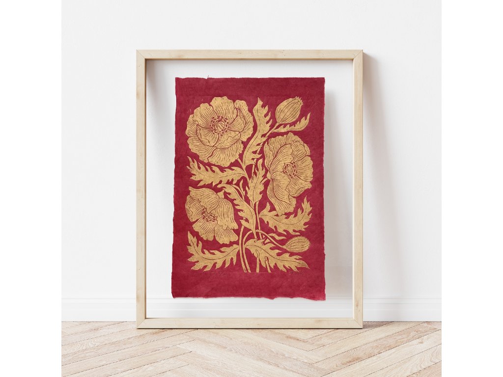 Poppies/Máky zlatý tisk Lokta ruční papír